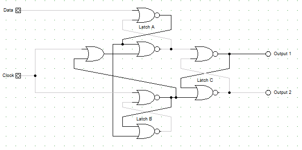 I have created a running example of this circuit using digital works. Download digital works and my example to run it