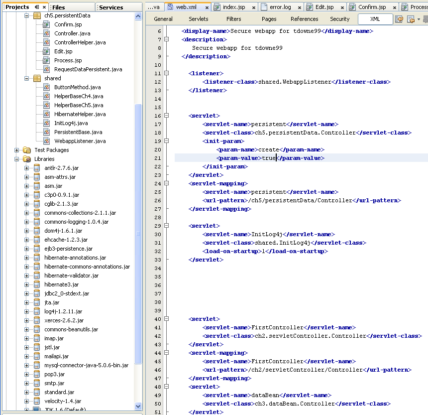 4) HelperBaseCh5.java HibernateHelper.java PersistentBase.java WebappListener.java Controller.java, and