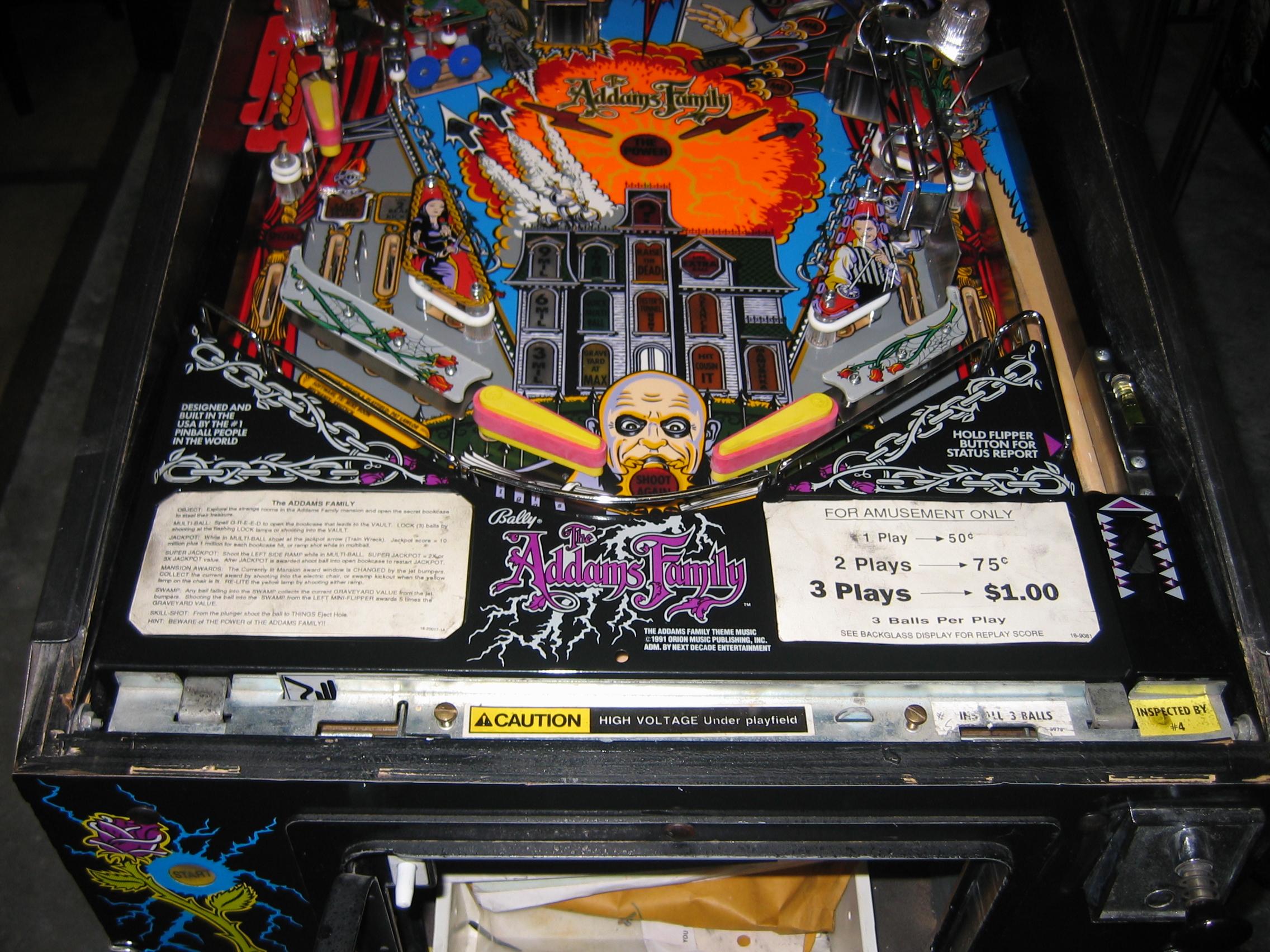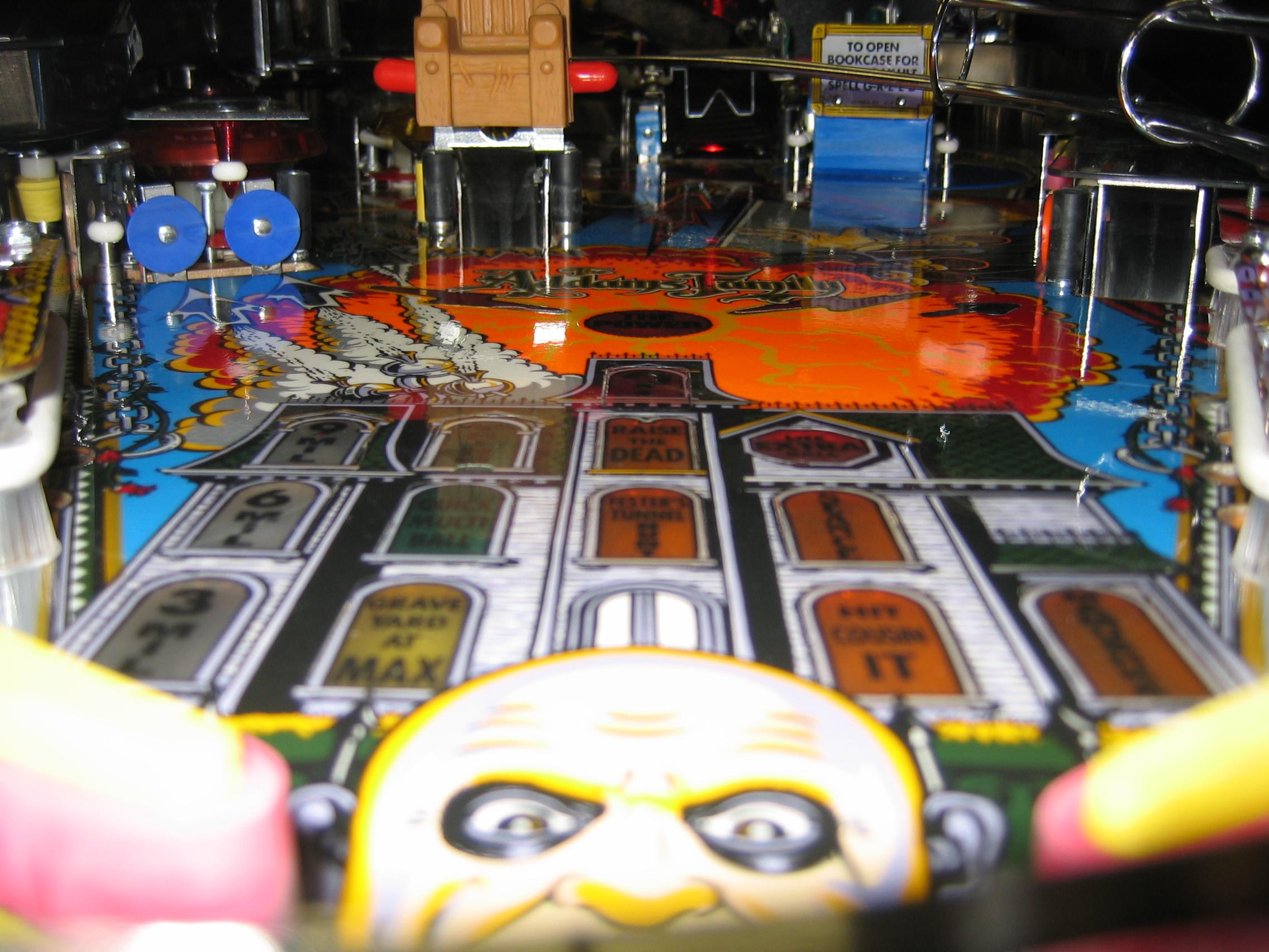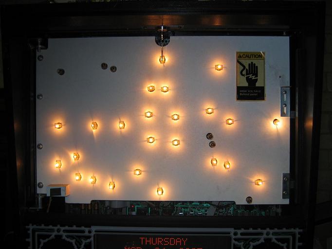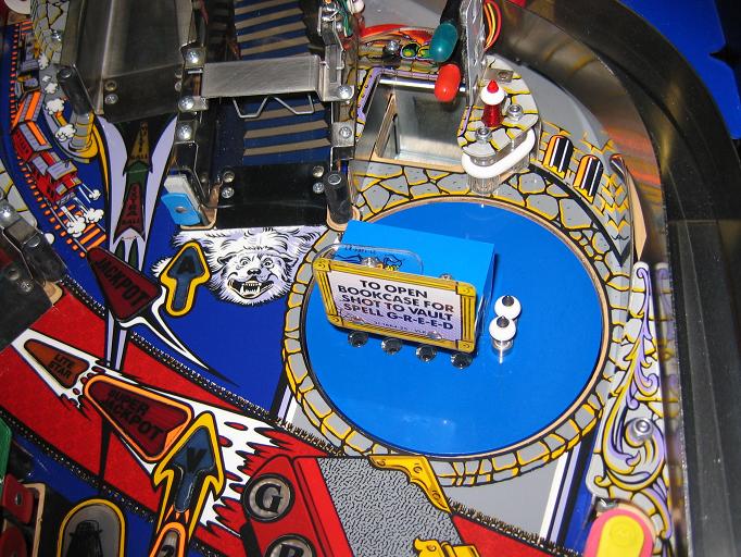 This game was totally dissassembled, and every playfield part cleaned, metal parts shined, and even the under playfield ramps were removed and cleaned. All light bulbs were changed, new rubbers installed, flippers all rebuilt, and the game plays like it just came out of the box. Click here to see a three-minute movie showing all features working on the super fast action on this game. The video is a 50 Meg download, so you must have a high-speed connection, and even so, it will take five to ten minutes for the download.