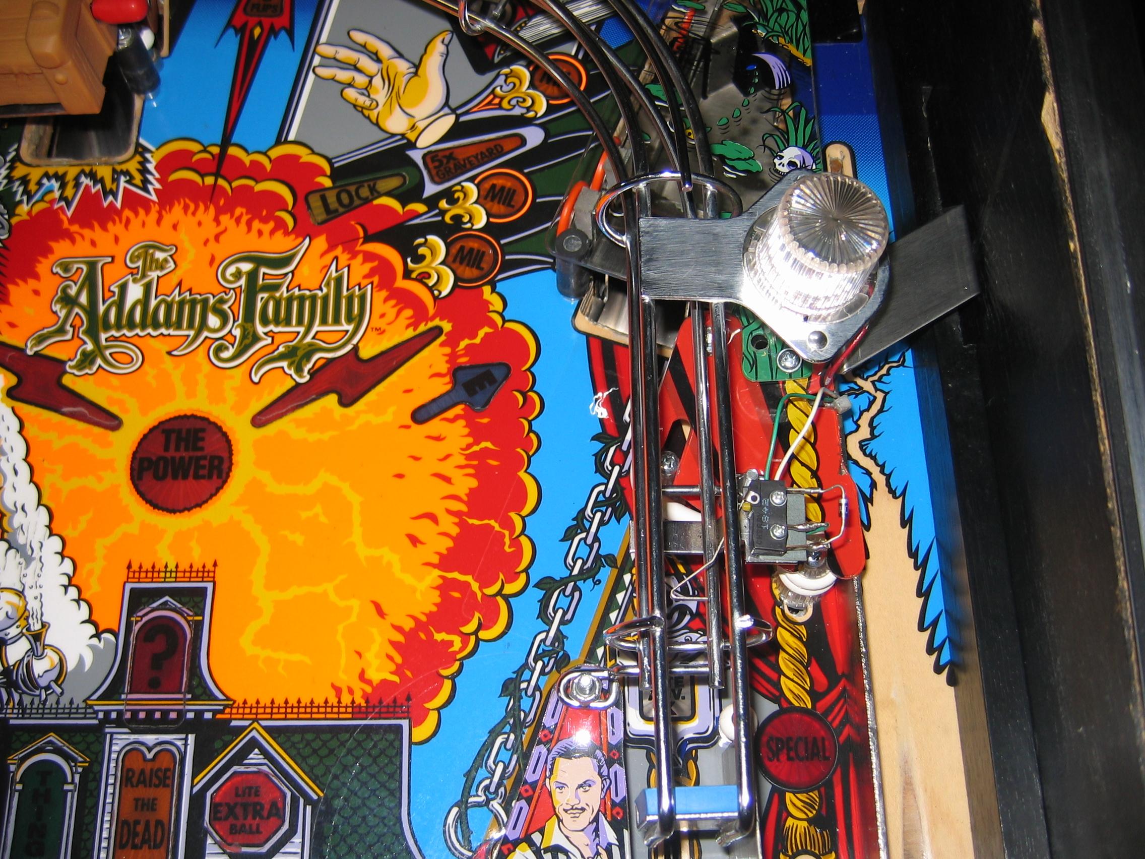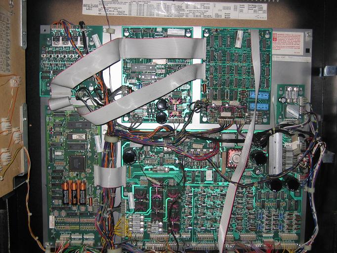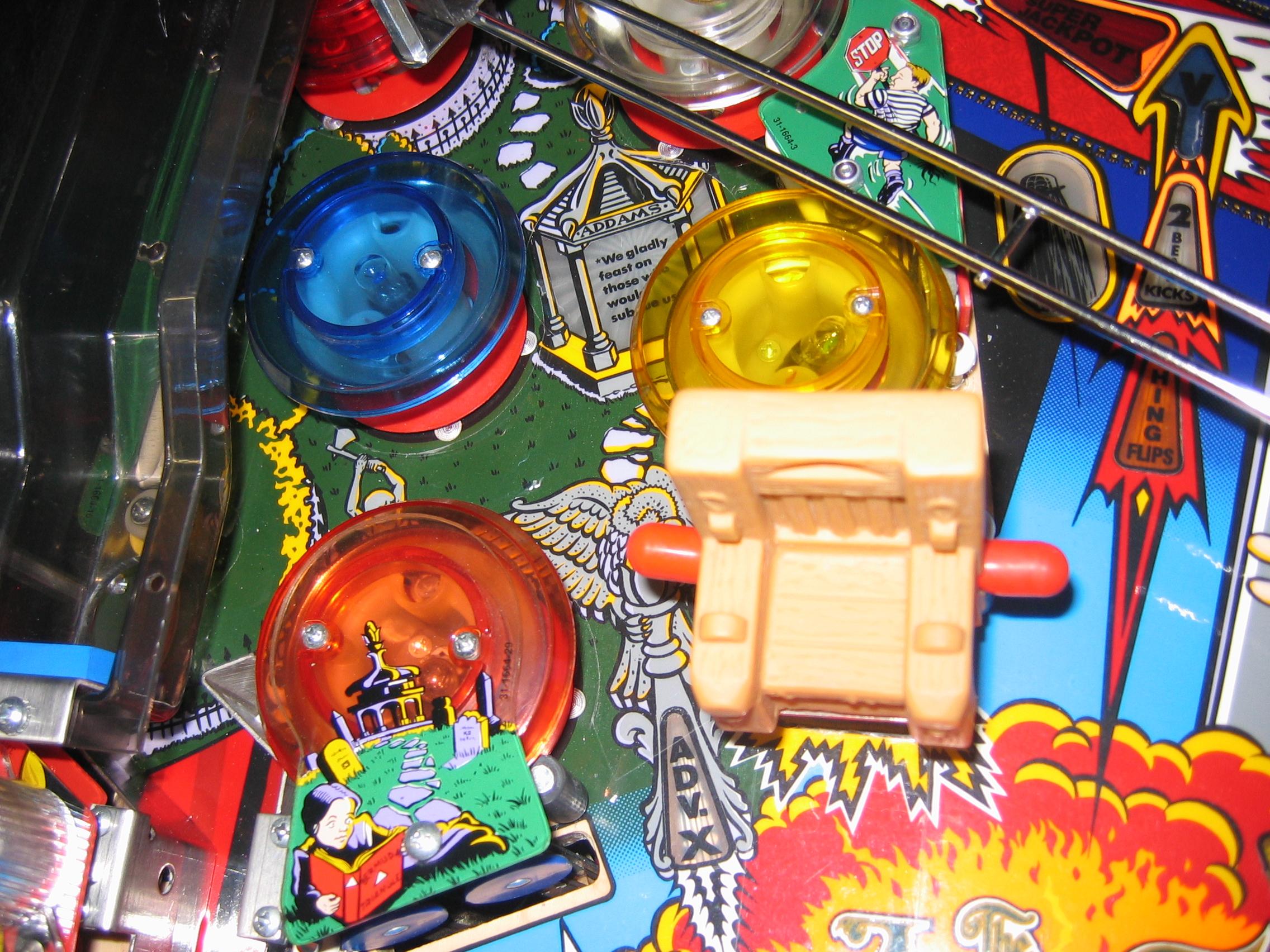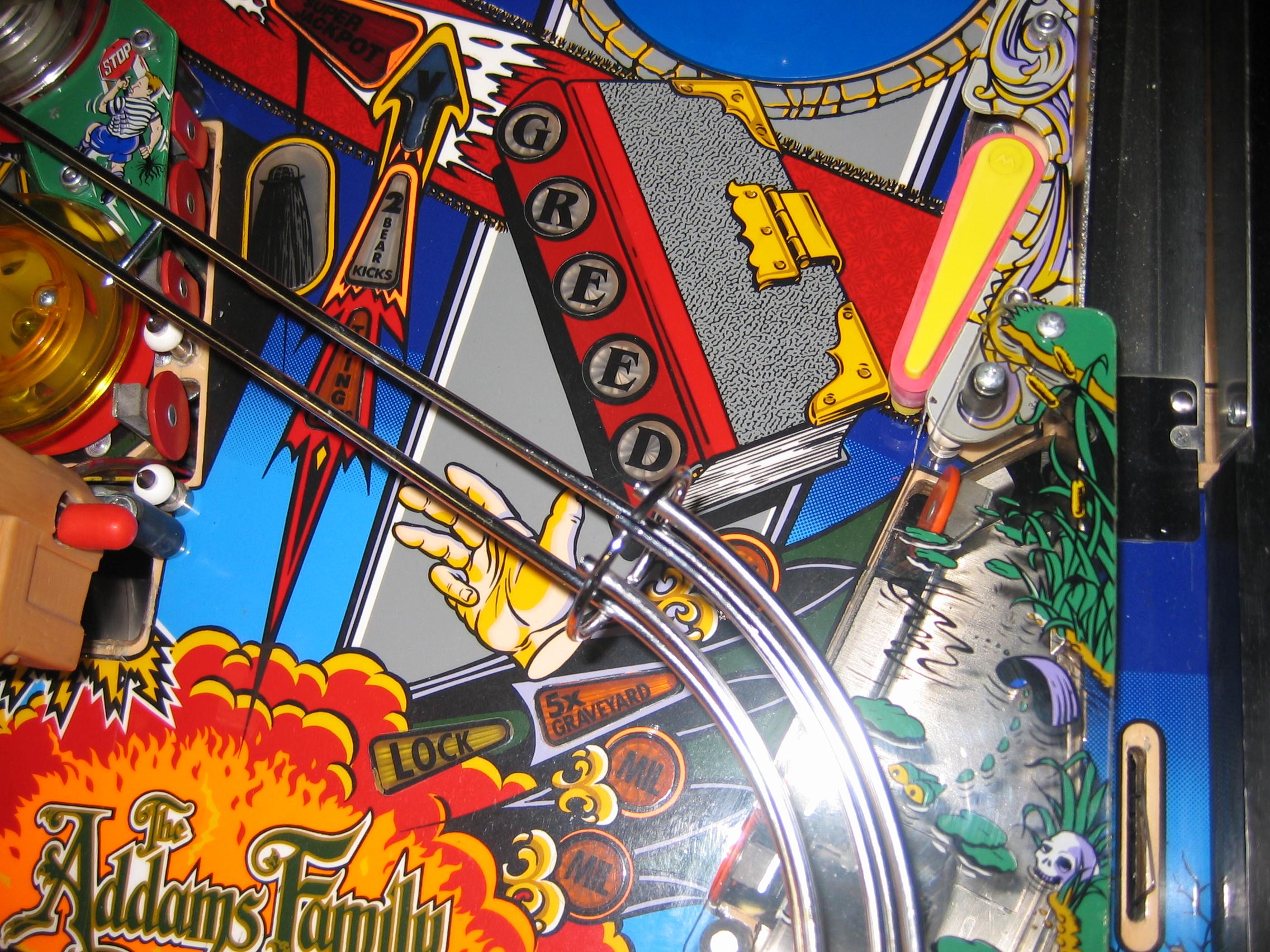 This game was totally dissassembled, and every playfield part cleaned, metal parts shined, and even the under playfield ramps were removed and cleaned. All light bulbs were changed, new rubbers installed, flippers all rebuilt, and the game plays like it just came out of the box. Click here to see a three-minute movie showing all features working on the super fast action on this game. The video is a 50 Meg download, so you must have a high-speed connection, and even so, it will take five to ten minutes for the download.